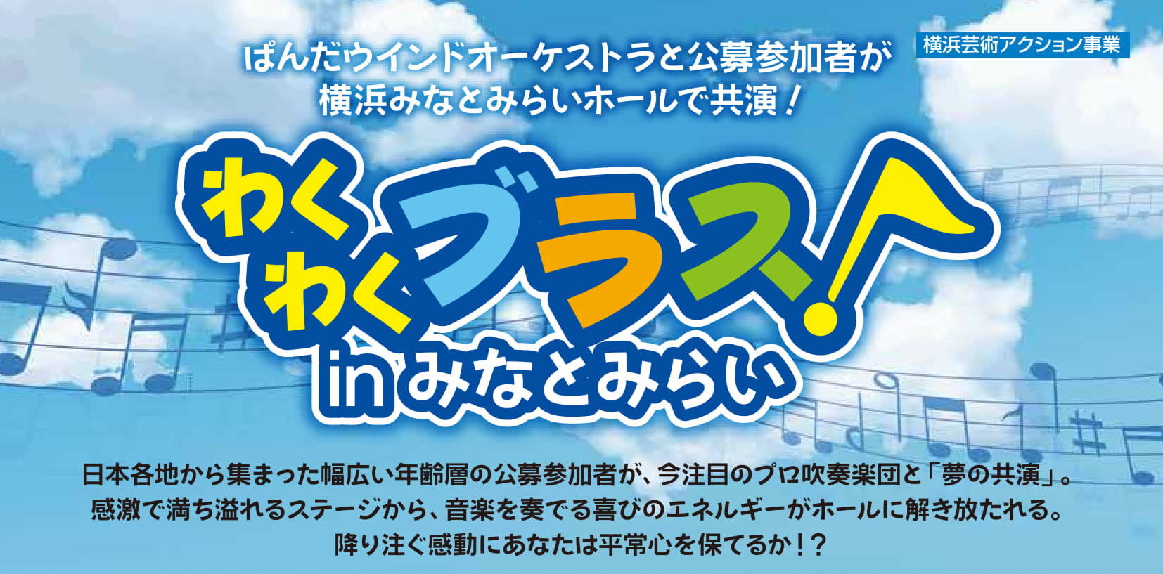 ぱんだウインドオーケストラと公募参加者が横浜みなとみらいホールで夢の共演する演奏会「わくわくブラス!inみなとみらい」が開催される。
