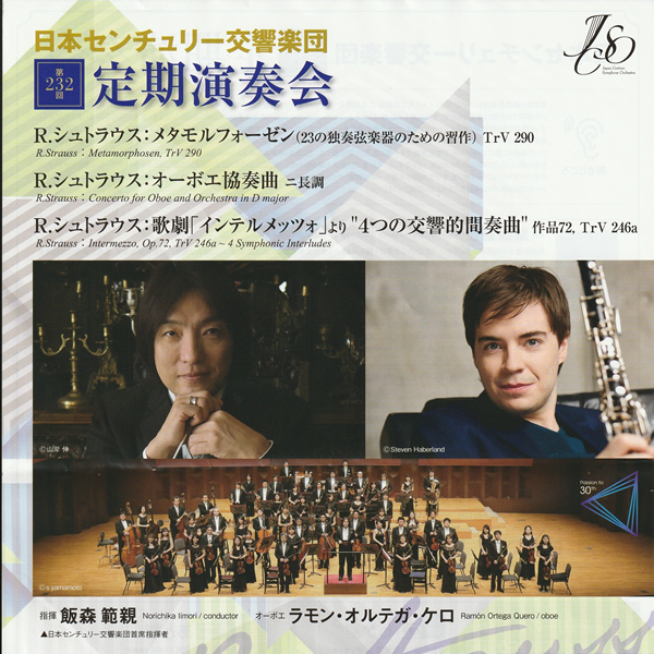 客演にオーボエのラモン・オルテガ・ケロ氏を迎え、日本センチュリー交響楽団が「第232回定期演奏会」を開催する。指揮は首席指揮者の飯森範親氏。