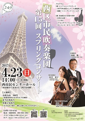 ゲストにサクソフォン奏者の川口力氏を迎える西区市民吹奏楽団第15回スプリングコンサート(2017/4/23:西市民センターホール)(福岡県)