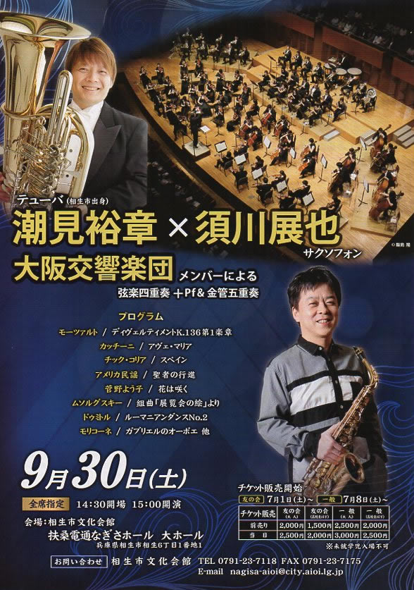 「潮見裕章×須川展也」大阪交響楽団メンバーによる弦楽四重奏+Pf&金管五重奏(2017/9/30:相生市文化会館 扶桑電通なぎさホール)