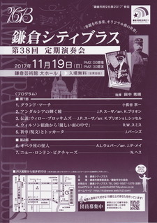 スーザのあまり演奏されないであろう「アンダルシアの輝く瞳」「伝説」も!鎌倉シテイブラス 第38回定期演奏会(2017/11/19:鎌倉芸術館 大ホール)